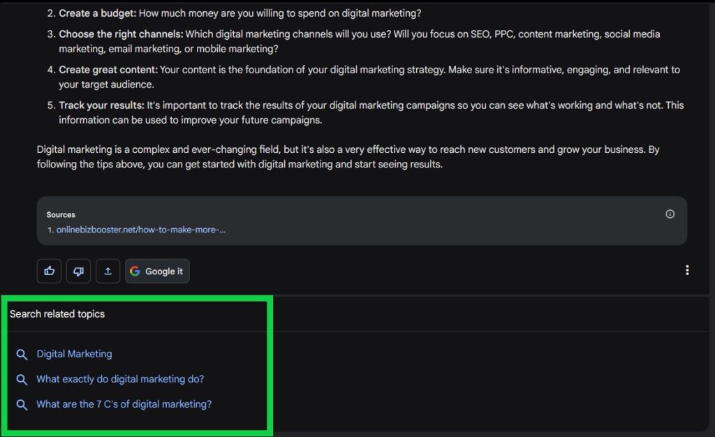 第 3 步:允许 AI 响应。然后您可以选择继续聊天或使用传统的搜索引擎 Google It。