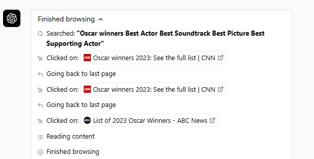 在使用这个插件的时候,你可以准确的看到LLM进行了哪些浏览步骤,包括搜索、点击、阅读的内容,类似于LangChain库。